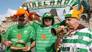 Zelená a oranžová barva ovládla historické centrum Prahy. Zahrádky nejen irských hospod jsou plné zelených klobouků a dresů. Fanoušci se připravují na večerní kvalifikační zápas s Českou republikou. Většina z nich přijela do Prahy z Bratislavy, kde jejich tým hrál minulou sobotu.