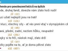 Na úterý vybírali čtenáři heslo pro sprint dvojic běžců na lyžích. Vyhrál slogan "Kluci, holky pojďte na to, ať je doma pěkné zlato" Přišel z mailové adresy adam.smuz@...