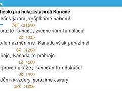 Na úterý vybírali čtenáři heslo pro zápas hokejistů v Kanadou. Vyhrál slogan "Přes lísteček javoru, vyšplháme nahoru!" .