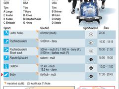 19:30 - 21:55 Short track - 1000 m - ženy finále, 500 m muži finále, 5000 m štafeta muži finále (Palavela)