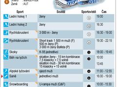 19:30 - 22:15 Short track - 1500 m muži, 500 m ženy; 3000 m ženy štafeta (Palavela)