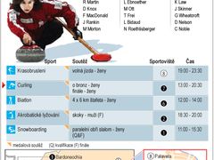 13:00 - 20:30 Curling - Bronz, finále - ženy (Pinerolo)